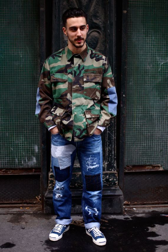 A mistura de materiais elevou o trabalho da marca, retalhos estampados aparecem nas peças. A jaqueta varsity por exemplo, tem forro estampado em paisley, as calças jeans tem retalhos e estampas internas, já os blusões possuem cotoveleiras camufladas.