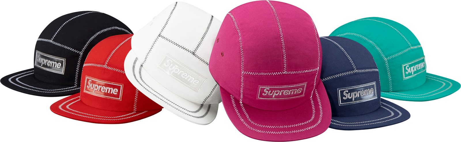 Entre os bonés, os five e six panels marcam presença com pegada clássica e também com novos materiais. Veludo, tafetá e acabamento brilhante se destacam nos five panel, que contam com bolsos laterais, costura aparente e visual minimalista com detalhes na aba e na lateral. Já entre os six panel e snapbacks logos clássicos, como o inspirado na marca do estilista francês André Courrèges e o queridinho “S” ganham novas versões.