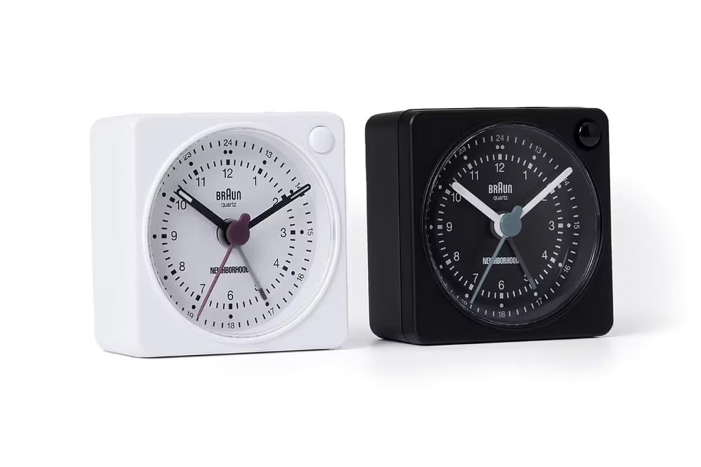 O despertador BC02, foi baseado no modelo AB1 de 1987, já o BC06, é versão repaginada do relógio de parede ABW30 de 1981. Ambos tem design limpo e funcional, incluindo marcação de 24 horas e os logos da NEIGHBORHOOD e Braun gravados.